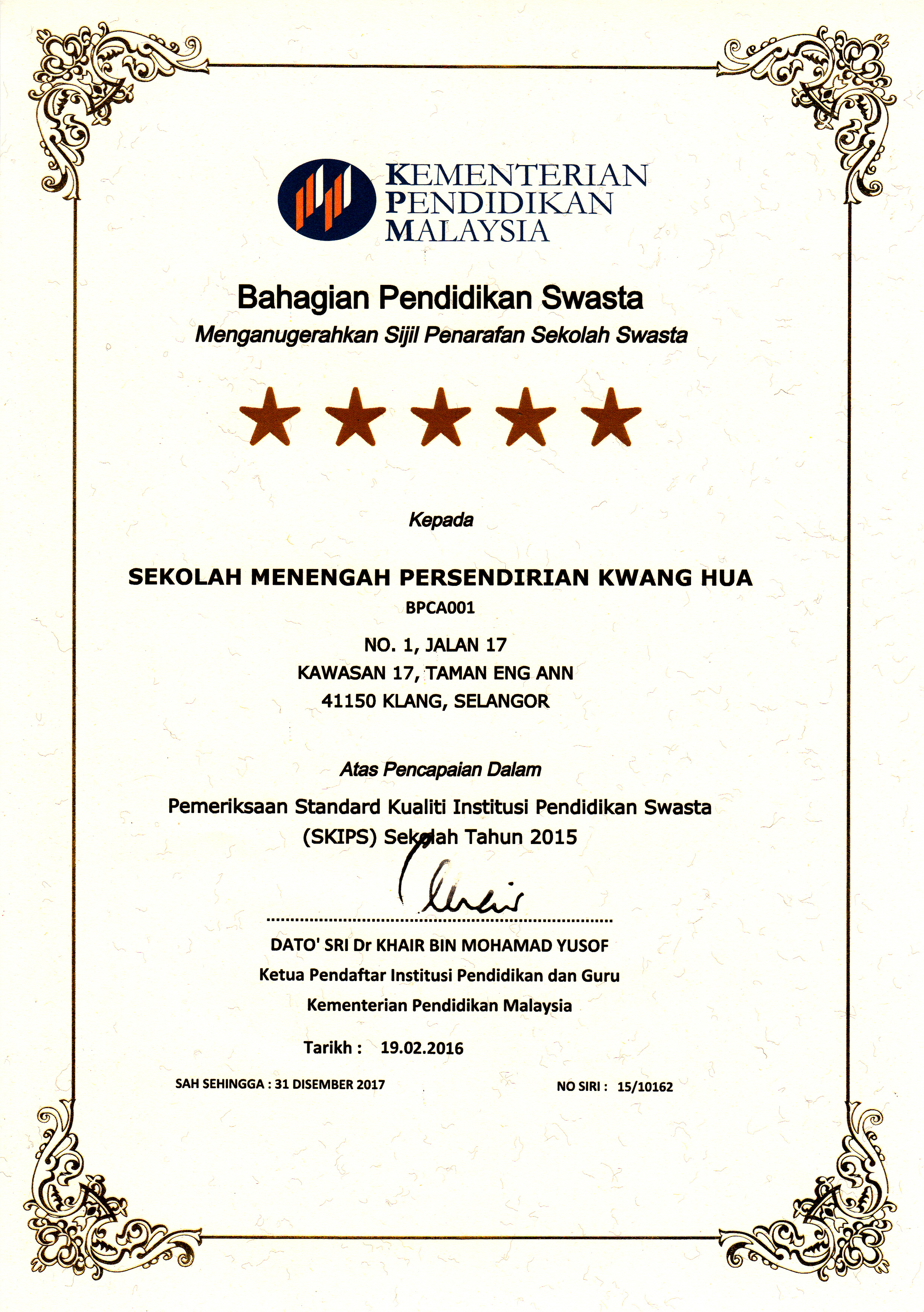 巴生光华独立中学全体教职员承诺将致力于