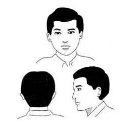 - 侧面发长不可触及耳朵,鬓发不可超过耳朵的一半。