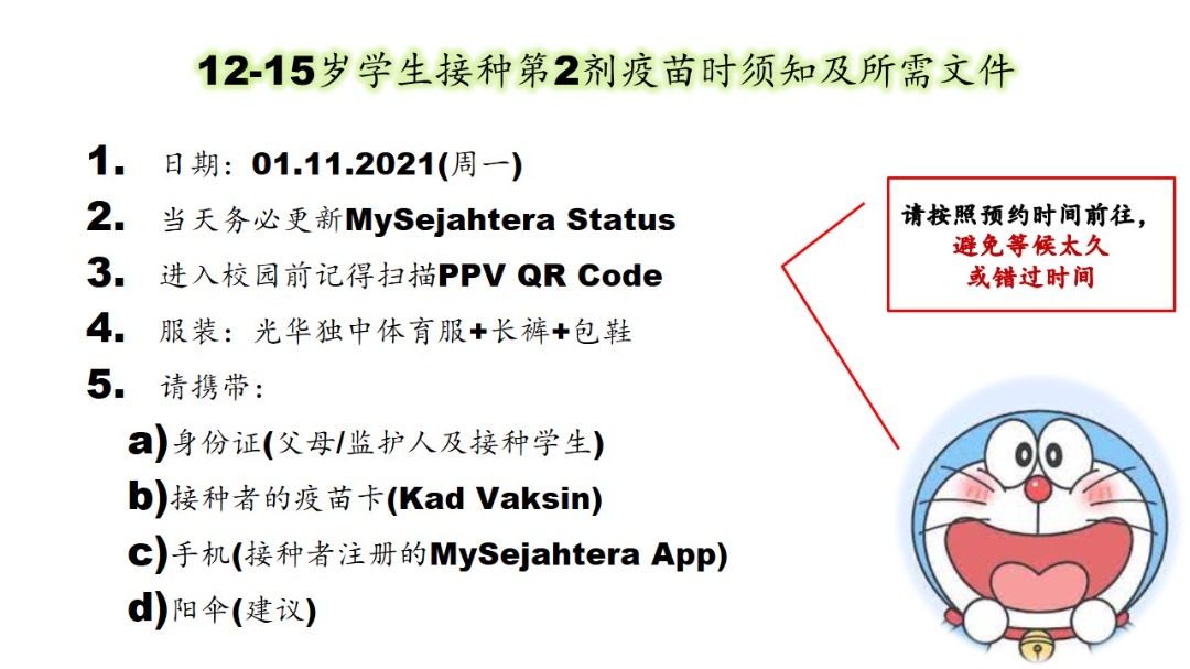 周一 10月 4 12-15岁青少年接种疫苗资讯 12-15岁学生接种疫苗事宜通告【更新】_05102021 12-15岁接种疫苗重要事项须知 光华独中12-15岁接种疫苗时间及名单 Borang Vaksin Covid-19 kanak2 new 6-09-2021 co Surat Perwakilan Vaksin Covid-19 co