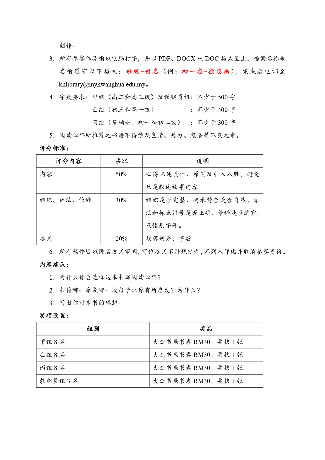 2024年华语阅读心得比赛简章