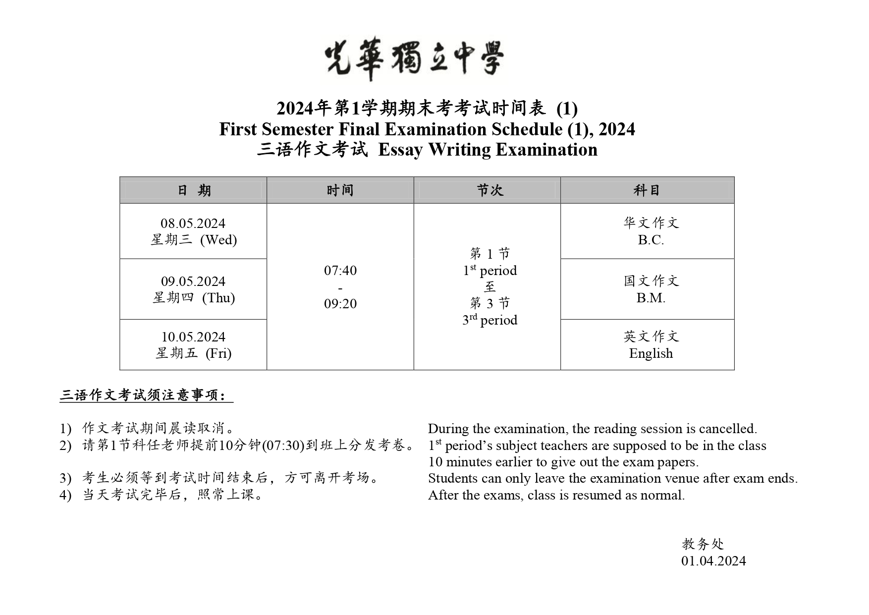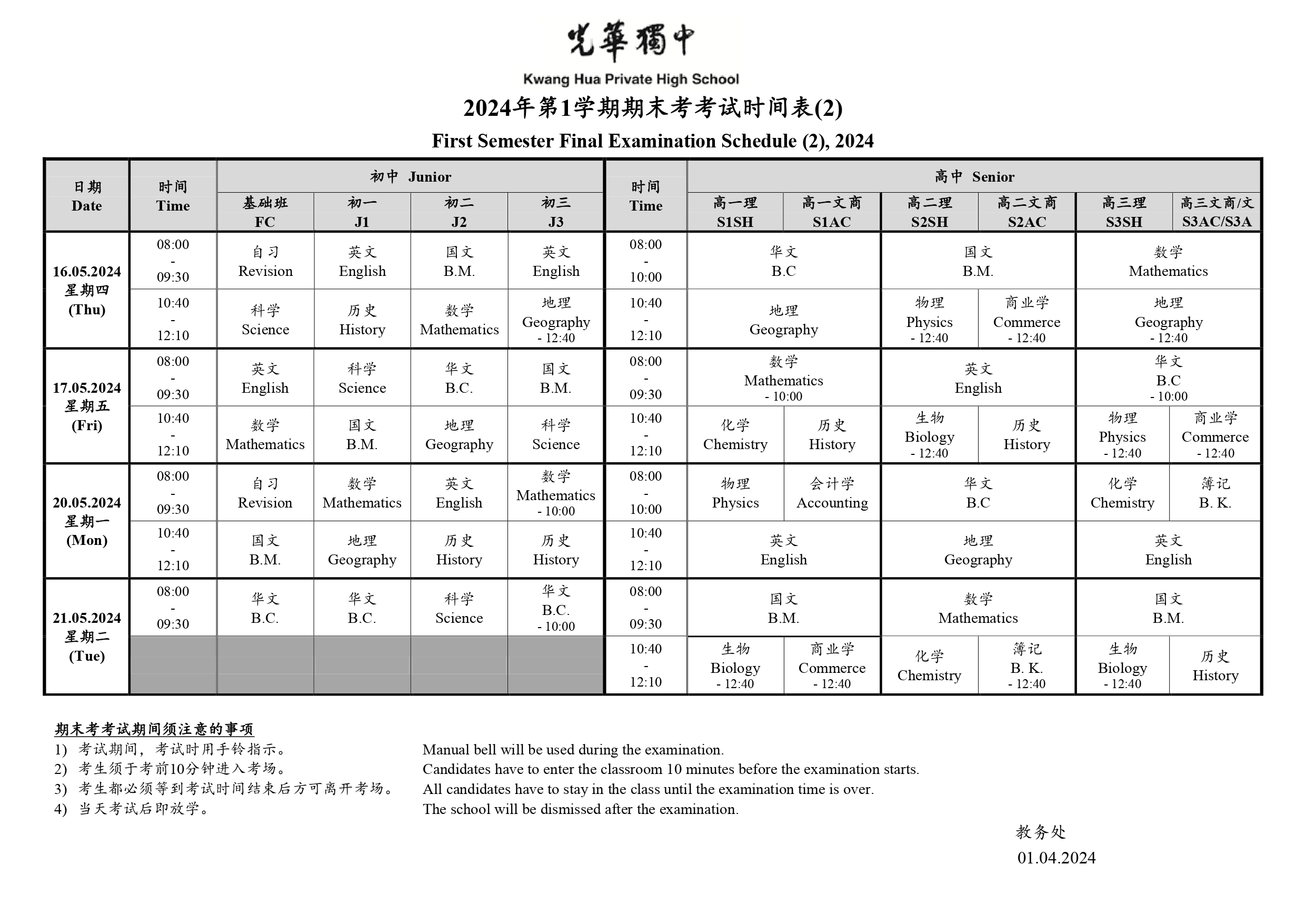 周五 4月 5 2024第1学期期末考试表 First Semester Final Examination Schedule (1), 2024 First Semester Final Examination Schedule (2), 2024