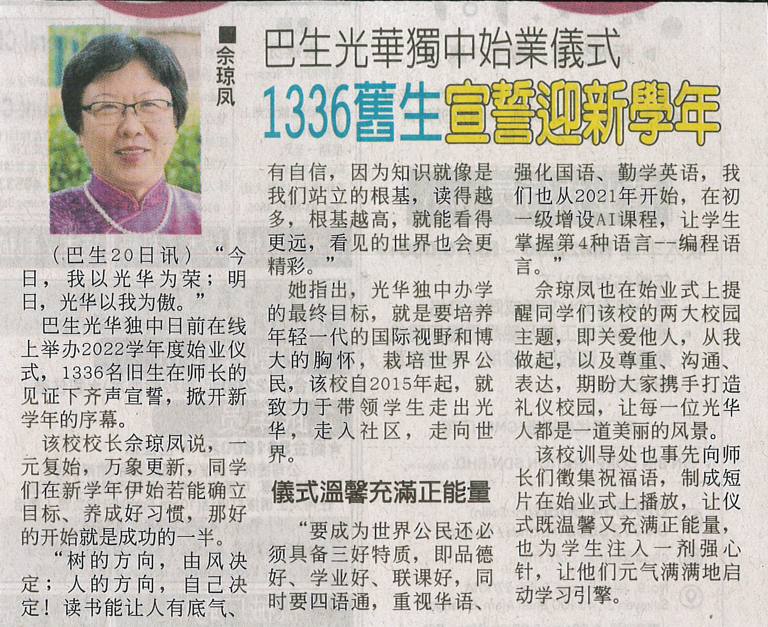 《中国报》本校始业仪式:1336名学生齐聚线上迎新