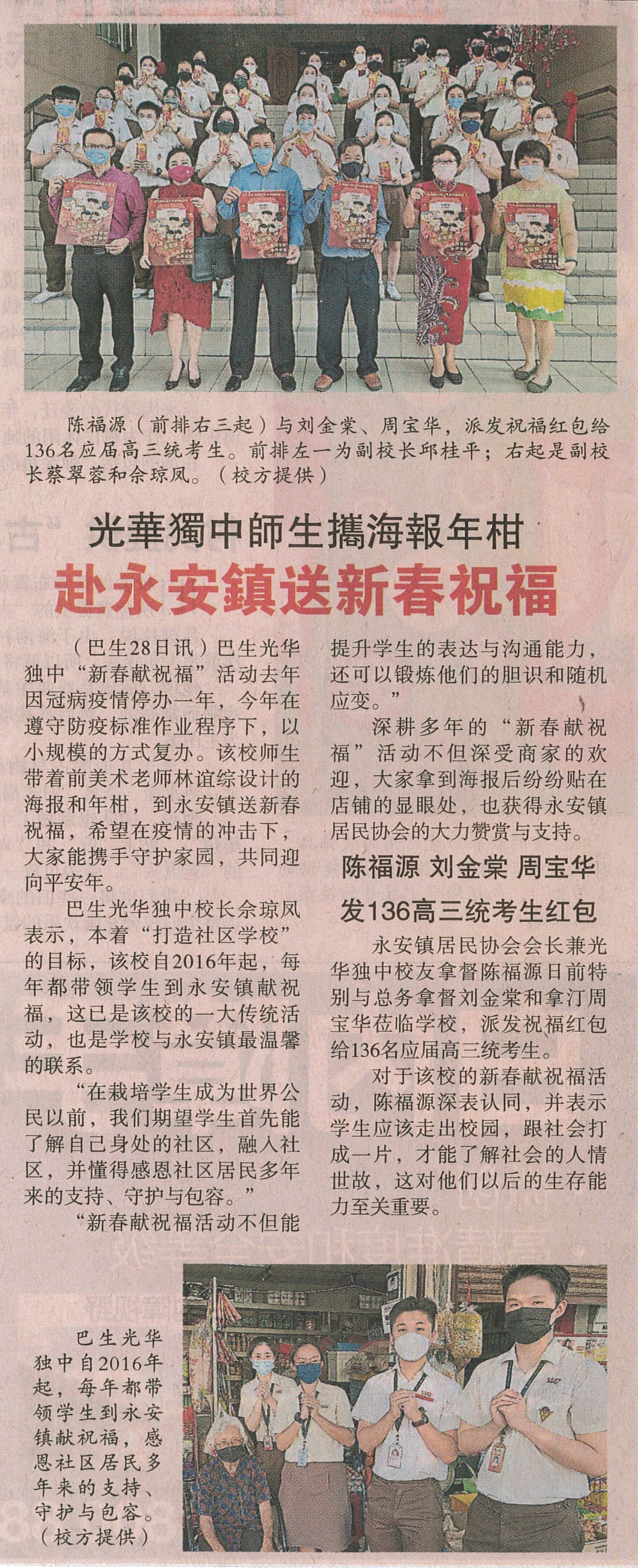 《星洲日报》新春献祝福活动回归,本校师生到永安镇送暖意