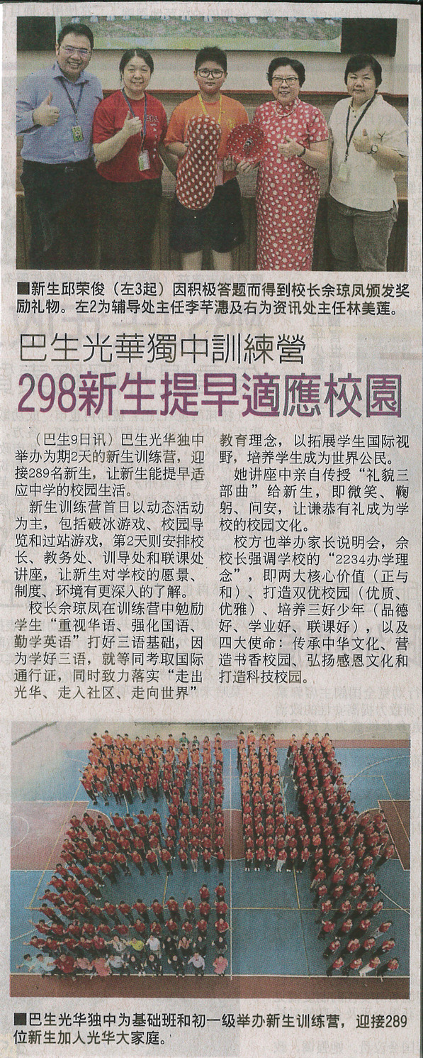 《中国报》巴生光华独中训练营 298新生提早适应校园