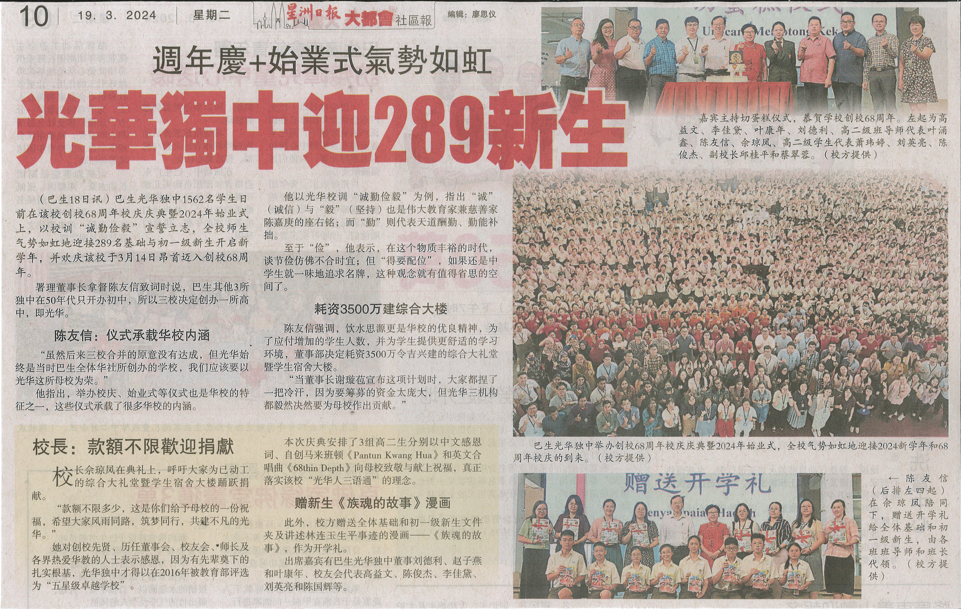 《星洲日报》周年庆-始业式气势如虹 光华独中迎289新生