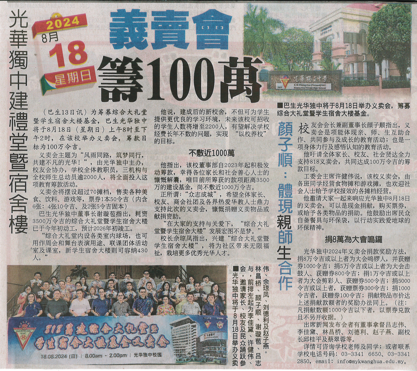 《中国报》光华独中建礼堂暨宿舍楼 义卖会筹100万