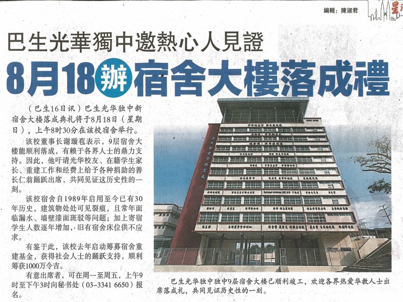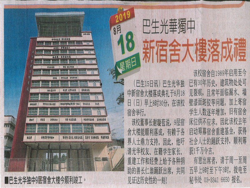 8月18办新宿舍大楼落成礼