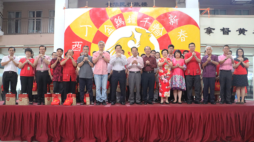 旨在提倡传统中华文化,本校日前逾千名师生及三机构理事齐聚一堂,欢庆丁酉年“金鸡耀千轮”新春庙会,喜迎金鸡富贵年。