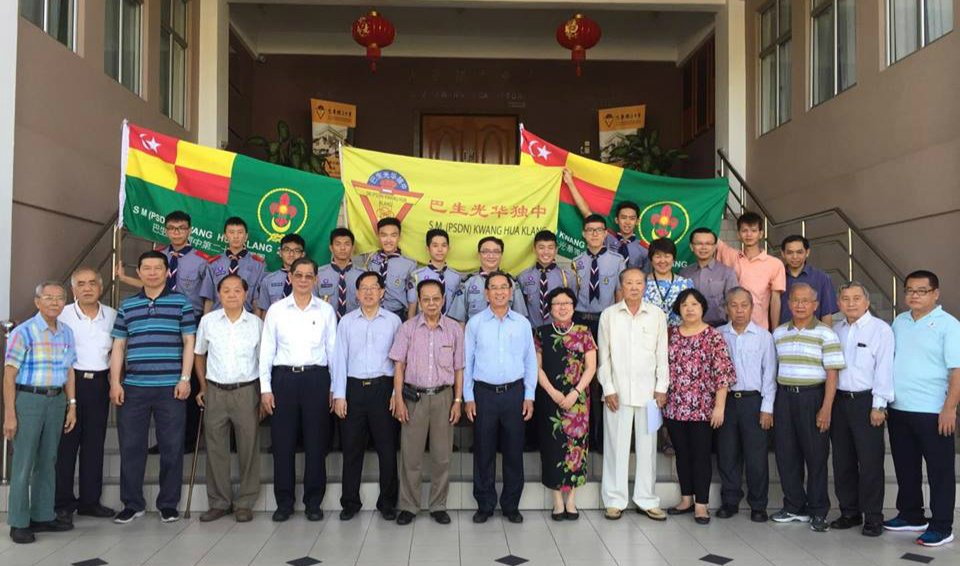巴生光华独中9名男童军将代表马来西亚赴蒙古参加第31届亚太区童军大露营,众董事特别给予祝福,包括:叶俹诚(前排左起)、洪有利、拿督吕志伟、黄忠诚、拿督林宽城、陈友信、黄华民、谢璇苞、佘琼凤、庄德枝、锺宝妹、准拿督苏致、黄升根、刘志强和叶康年。
