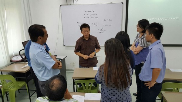 林汶良(中)与本校数学老师分享自己的教学经验,促进彼此的专业成长。
