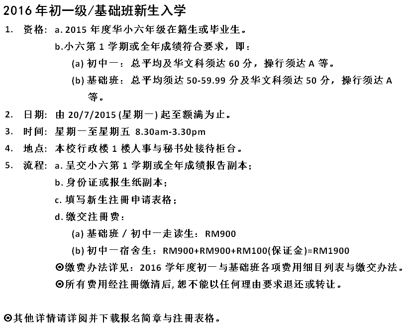 2016年初一级/基础班新生入学