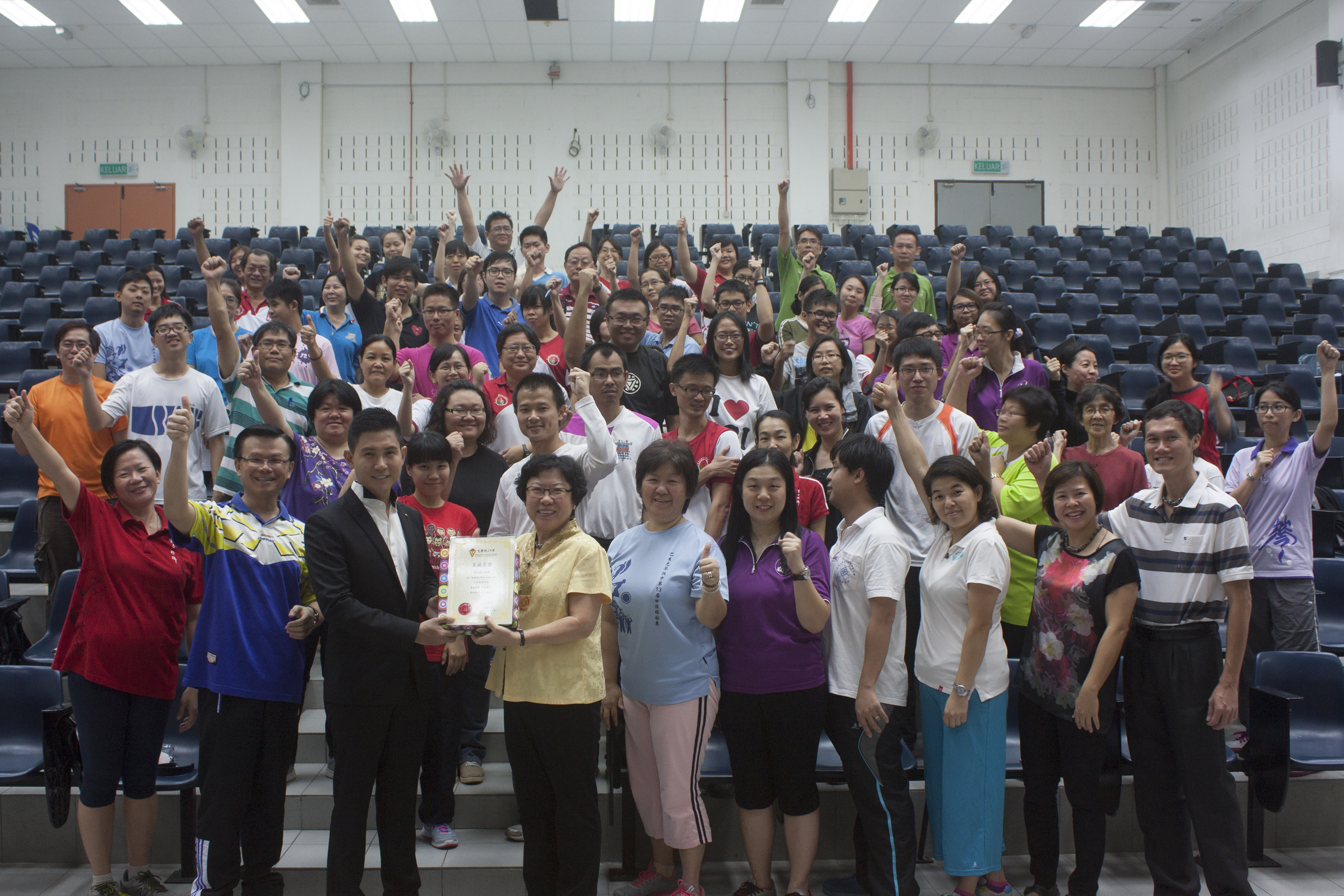 佘琼凤校长(前排左四)颁发感谢状予潘昶伶博士(前排左三),感谢他义务为教职员们提供保健讲座。