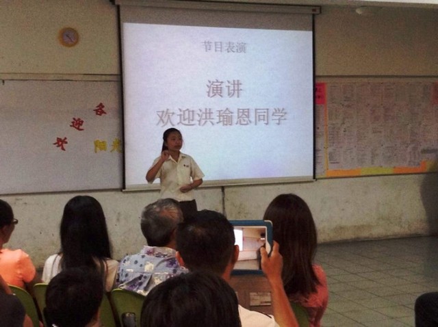 图8:初一蓝洪瑜恩同学为家长们呈现演讲。