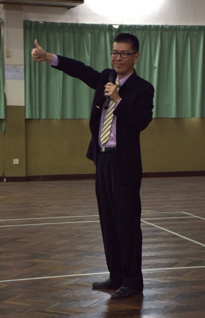 图1:马锦华硕士对于一早到校参与讲座的家长给予高度的赞赏。