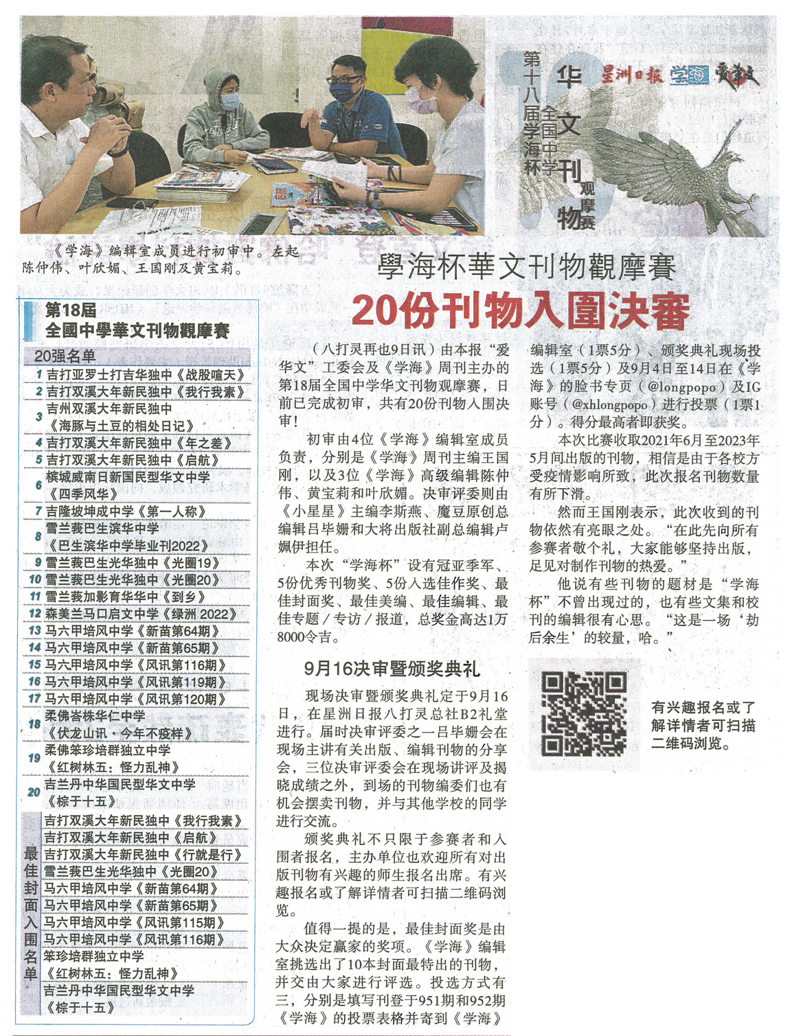 本校《光圈20》入围学海杯华文刊物观摩赛决审