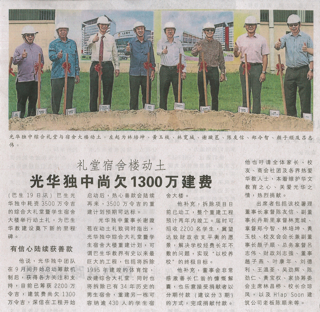 动土仪式启动,本校礼堂宿舍楼尚欠1300万盼捐助
