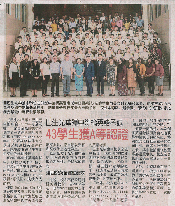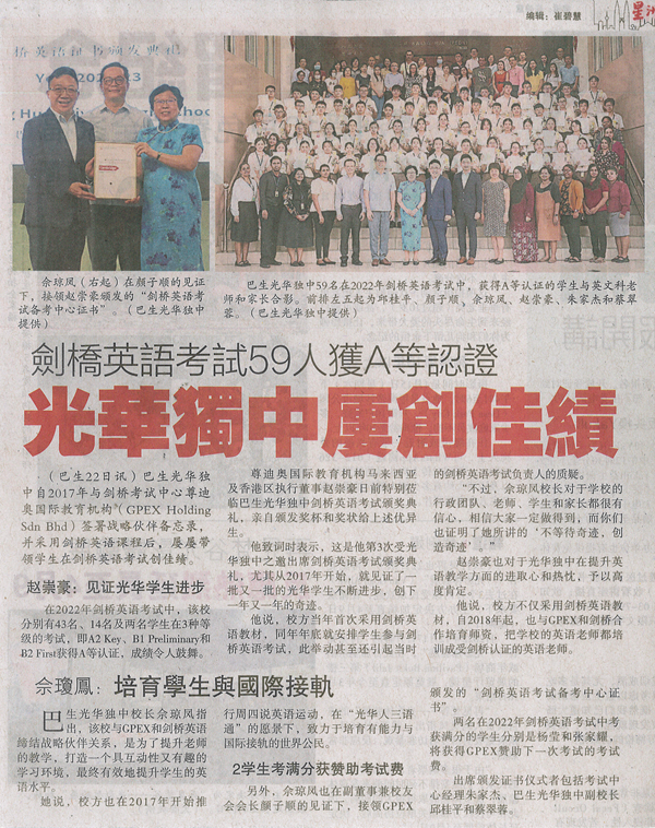 本校剑桥英语考试捷报频传,59名学生获A等认证